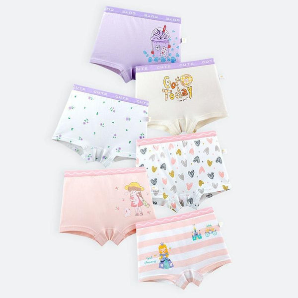 6pcs/set Children High Elastic Cartoon Printed Cotton Boxer Briefs, Size: L(T-6615 Girls)