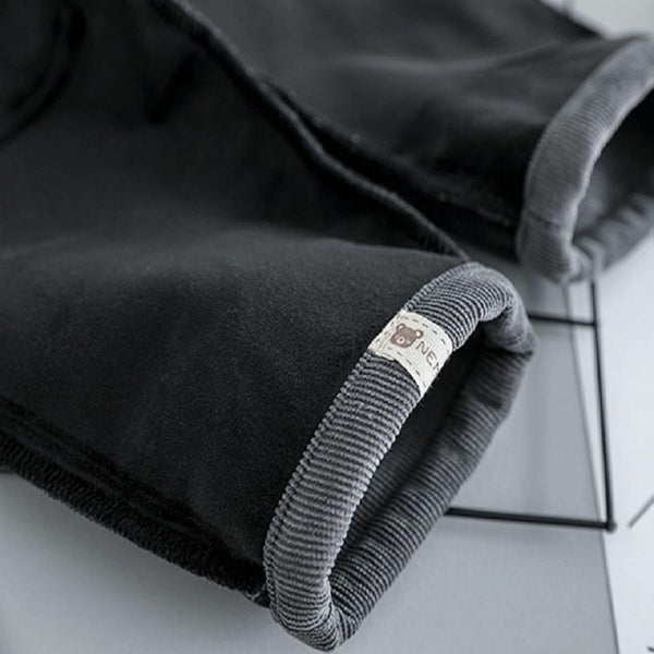 Autumn and Winter Fleece Cartoon Bear Pattern Children Long Sleeve Pullover Top + Pants Set, Height:70cm(Black)