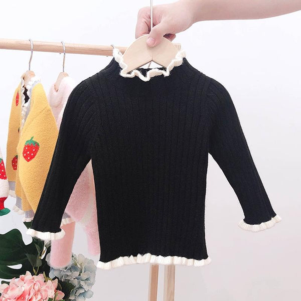 Autumn and Winter Girls Sweater Baby Warm Pullover Bottoming Shirt, Size: 100cm(Black)