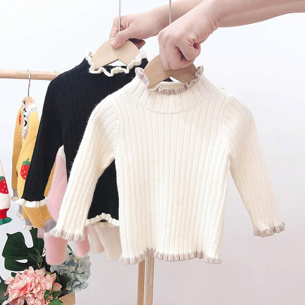 Autumn and Winter Girls Sweater Baby Warm Pullover Bottoming Shirt, Size: 130cm(Add Velvet Black)