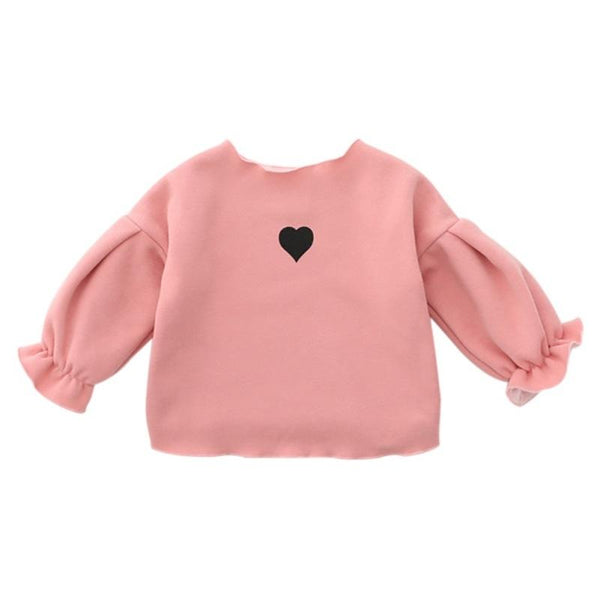 Autumn and Winter Warm Cute Puff Sleeve Top Heart-shaped Embroidered Sweatshirt Girls Tops, Height:100cm(Pink)