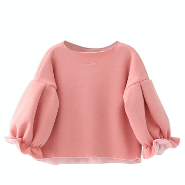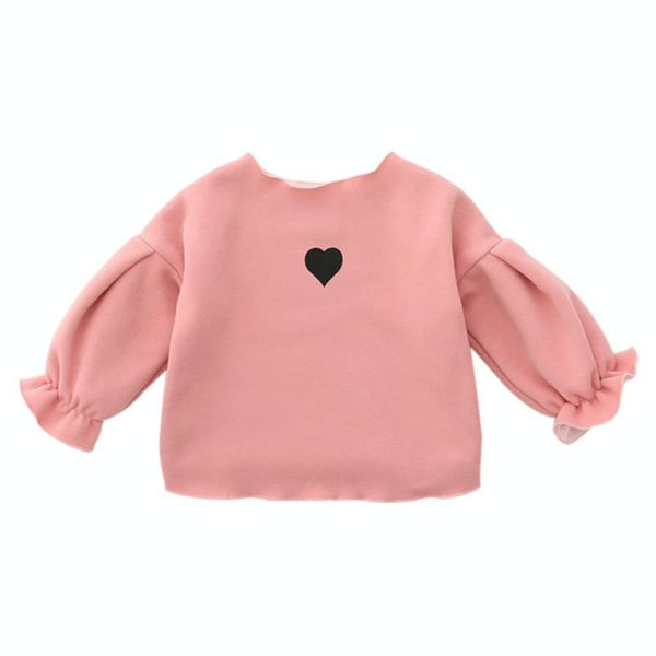 Autumn and Winter Warm Cute Puff Sleeve Top Heart-shaped Embroidered Sweatshirt Girls Tops, Height:90cm(Pink)