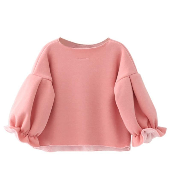 Autumn and Winter Warm Cute Puff Sleeve Top Heart-shaped Embroidered Sweatshirt Girls Tops, Height:90cm(Turmeric)