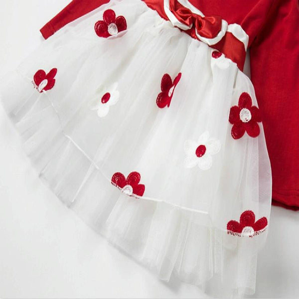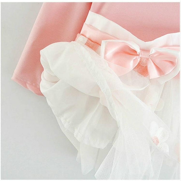 Autumn Girls Flower Bow-knot Long Sleeve Dress, Size:110cm(Pink)
