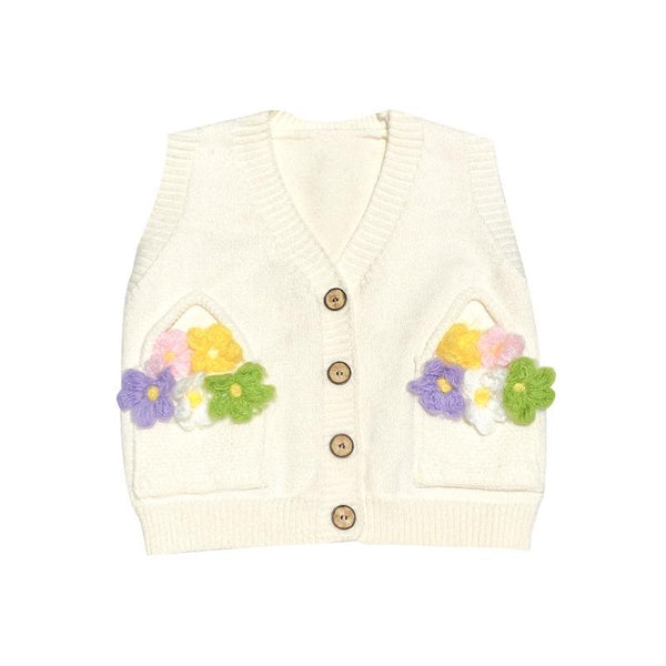 Baby Girl Knitted Vest Flower Sweater Outer Undershirt, Size: 100cm(Beige)