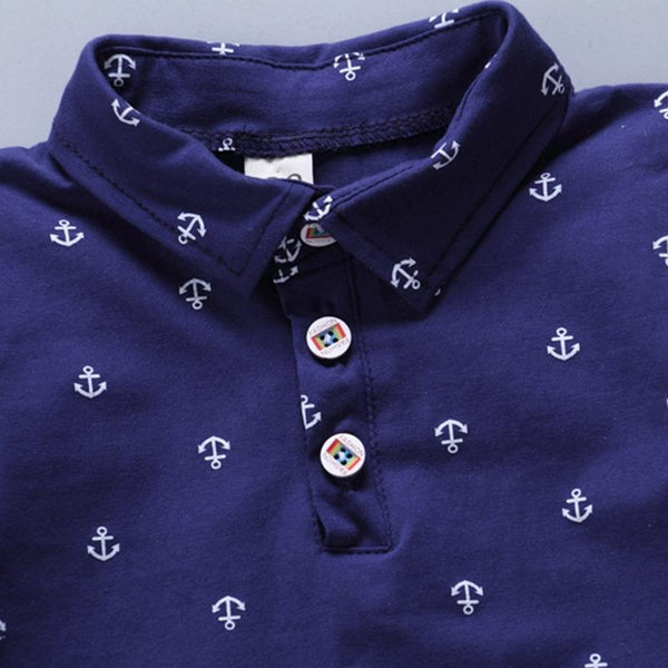 Boy Print Polo Shirt + Shorts Set, Size:100cm(White)
