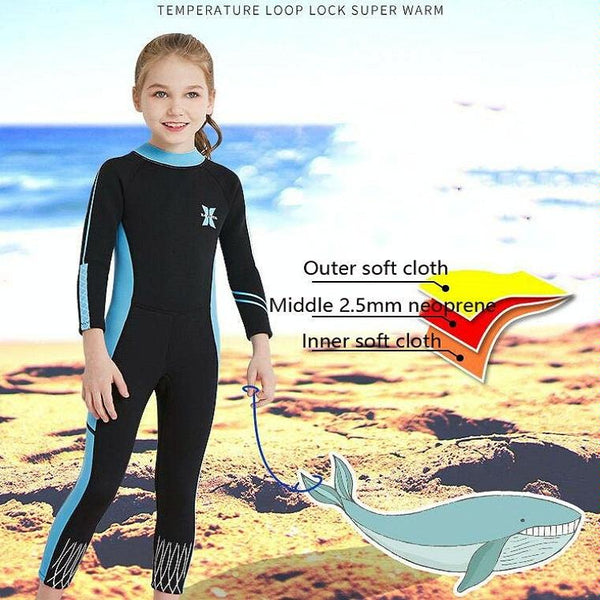 DIVE & SAIL 2.5mm Children Diving Suit One-piece Warm Snorkeling Suit Drifting Sunscreen Swimsuit, Size: S(Black Blue)