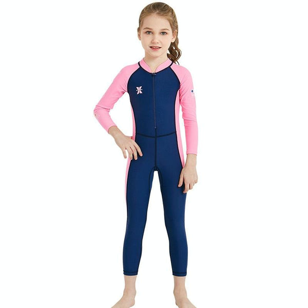 DIVE&SAIL Children Diving Suit Outdoor Long-sleeved One-piece Swimsuit Sunscreen Swimwear, Size: L(Girls Dark Blue)