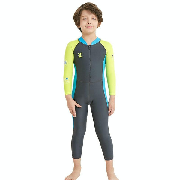 DIVE&SAIL Children Diving Suit Outdoor Long-sleeved One-piece Swimsuit Sunscreen Swimwear, Size: M(Boys Dark Gray)
