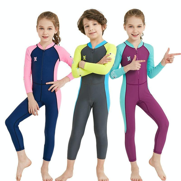 DIVE&SAIL Children Diving Suit Outdoor Long-sleeved One-piece Swimsuit Sunscreen Swimwear, Size: XXL(Girls Dark Blue)