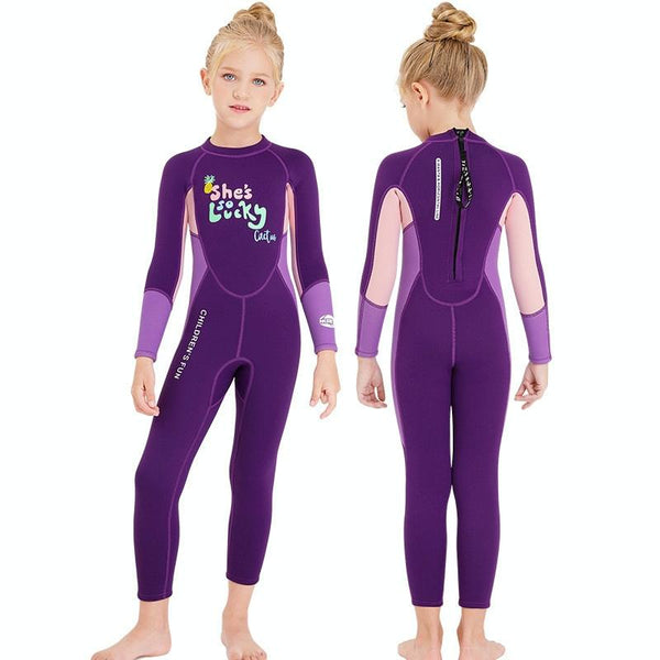 DIVE&SAIL Children Warm Swimsuit One-piece Wetsuit Long Sleeve Cold-proof Snorkeling Surfing Suit, Size: M(Purple)