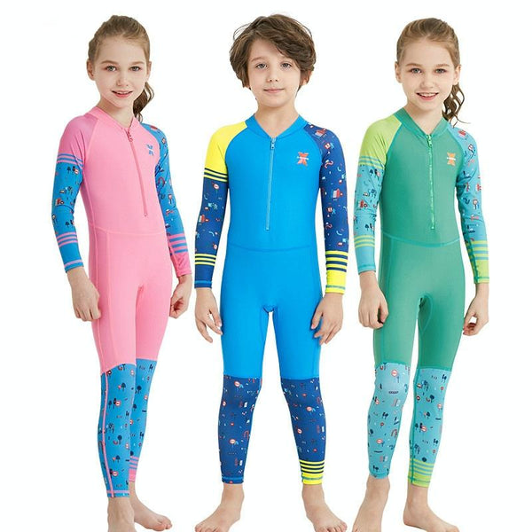 DIVE & SAIL LS-18822 Children Diving Suit Outdoor Sunscreen One-piece Swimsuit, Size: S(Girl Green)