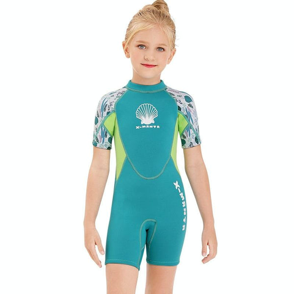 DIVE & SAIL M150656K Children Diving Suit 2.5mm One-piece Warm Swimsuit Short-sleeved Cold-proof Snorkeling Surfing Anti-jellyfish Suit, Size: L(Green)