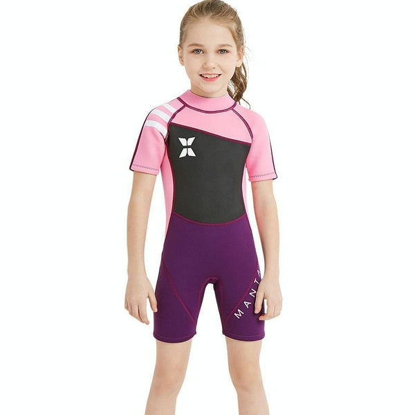DIVE & SAIL WS-18813 2.5mm Children Warm Diving Suit One-piece Short-sleeved Sunscreen Snorkeling Suit Drifting Cold-proof Swimming Suit, Size: M(Black Powder Sleeve)