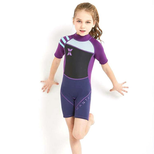 DIVE & SAIL WS-18813 2.5mm Children Warm Diving Suit One-piece Short-sleeved Sunscreen Snorkeling Suit Drifting Cold-proof Swimming Suit, Size: M(Black Purple Sleeve)