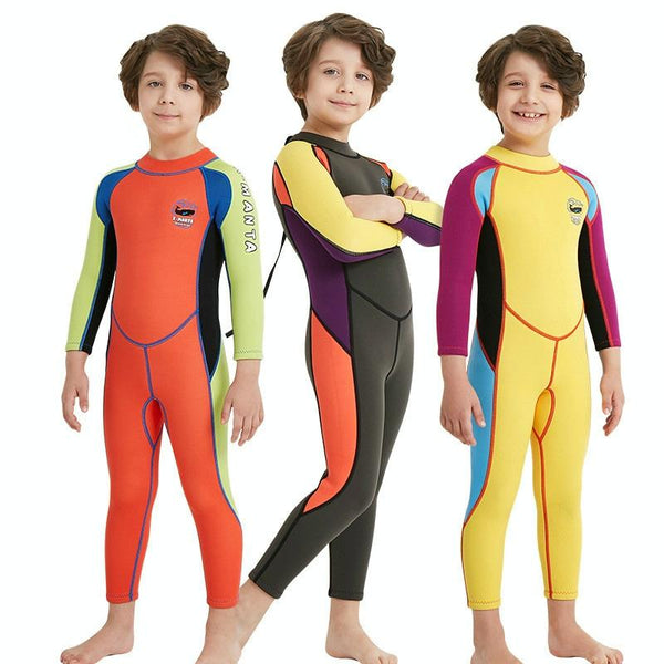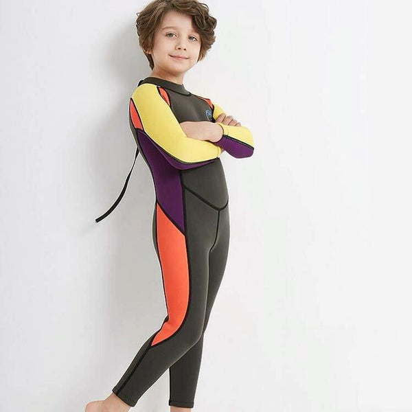 DIVE&SAIL WS-18816 Children Diving Suit One-piece Long-sleeved Swimsuit Sunscreen Hot Spring Surfing Suit, Size:S(Army Green Yellow Sleeves)