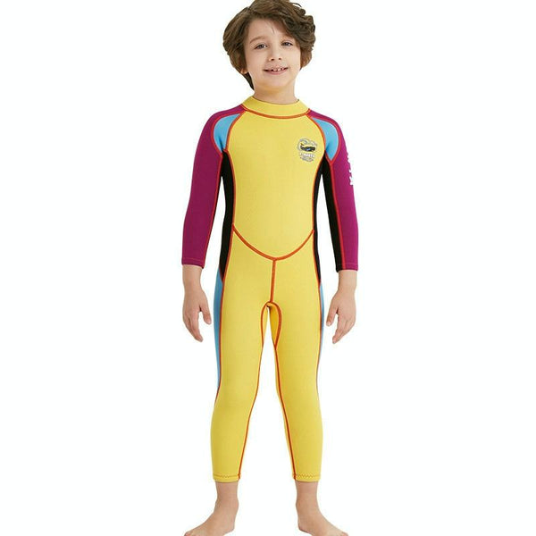 DIVE&SAIL WS-18816 Children Diving Suit One-piece Long-sleeved Swimsuit Sunscreen Hot Spring Surfing Suit, Size:S(Yellow Purple Sleeves)