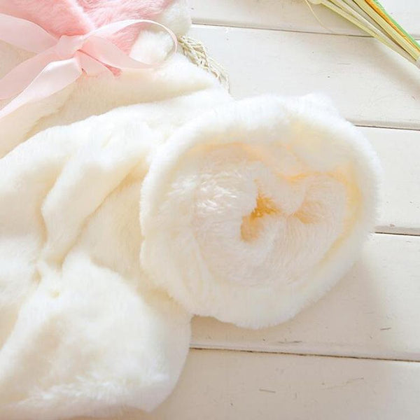 Female Baby Cartoon Rabbit Ears Shape Hooded Imitation Rabbit Fur Shawl Coat, Kid Size:90cm/10(White)