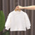 Girls Bottoming Shirt Cotton Yarn Sleeve Stand-Up Collar Tops, Size: 120 Yards(White)