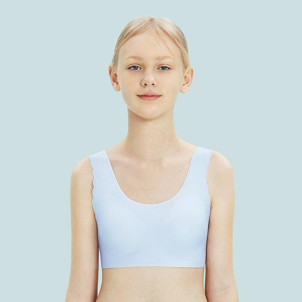 Girls Development Fixed Cup Seamless Underwear Student Vest Bra, Size: F1 52.5-62.5kg(Light Blue)