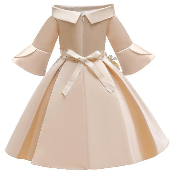 Girls European Style Embroidered Dress Prom Dress, Size:140cm(Champagne)