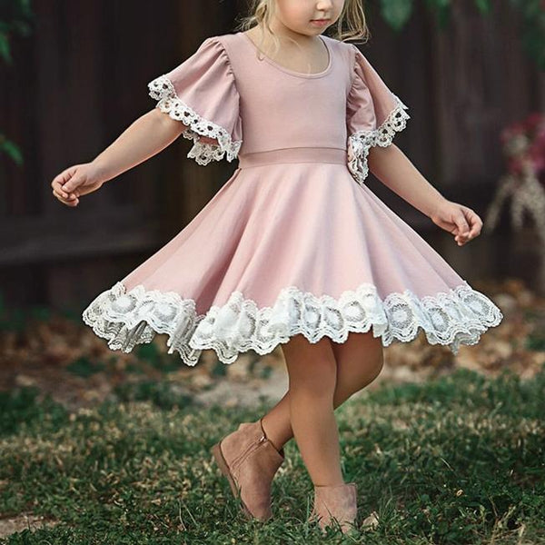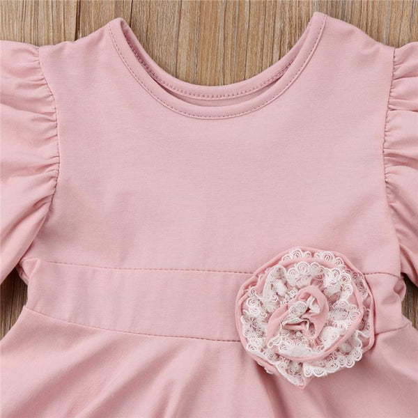 Girls Lace Princess Dress Trumpet Sleeve Three-dimensional Flower Dress, Kid size:130cm(Pink)