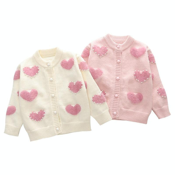 Girls Love Sweater Cardigan Autumn and Winter Knitted Sweater Jacket, Size:130cm(Beige)