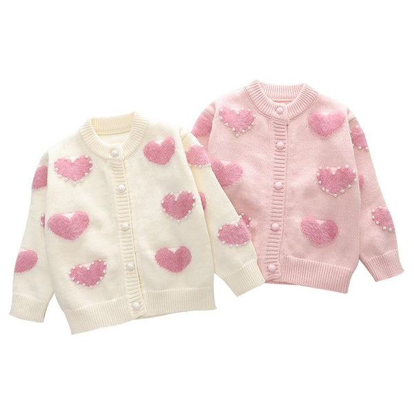Girls Love Sweater Cardigan Autumn and Winter Knitted Sweater Jacket, Size:130cm(Pink)