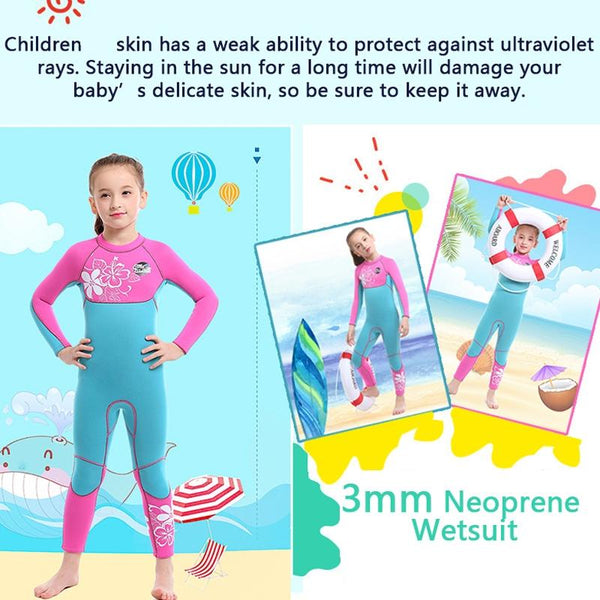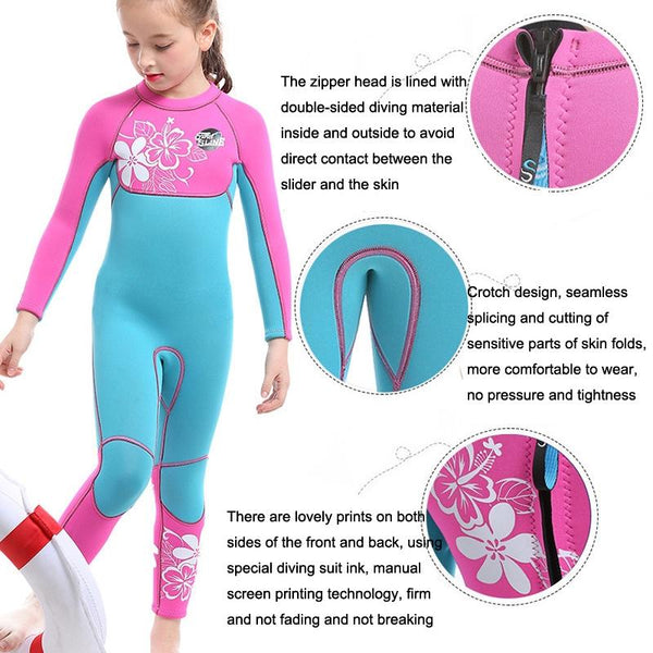 SLINX 1903 Kids Full Body Long Sleeve Thermal Wetsuit, Size: L(Pink Blue)