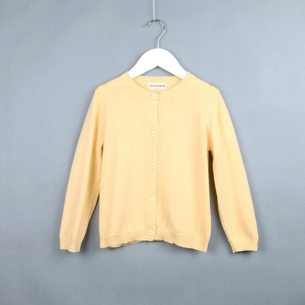 Spring and Autumn Children Clothing Girl Cotton Knit Cardigan Sweater, Kid Size:110cm(Light Yellow)