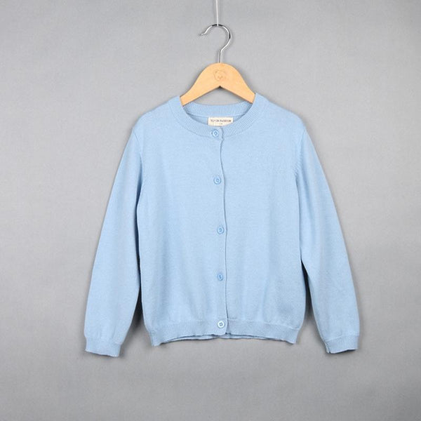 Spring and Autumn Children Clothing Girl Cotton Knit Cardigan Sweater, Kid Size:120cm(Light Blue)