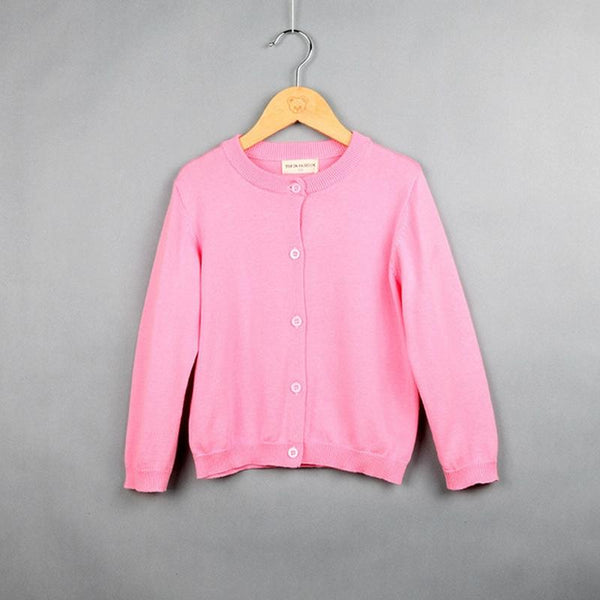 Spring and Autumn Children Clothing Girl Cotton Knit Cardigan Sweater, Kid Size:120cm(Pink)