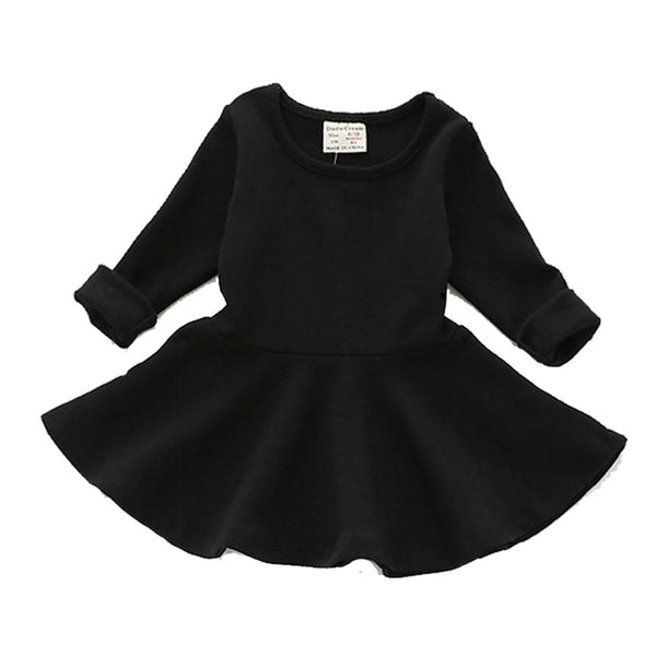 Spring and Autumn Female Babies Cotton Sanded Lotus Leaf Large Swing Skirt Dress(Black)