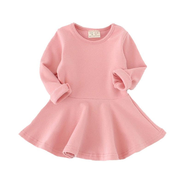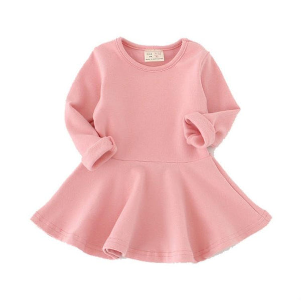 Spring and Autumn Female Babies Cotton Sanded Lotus Leaf Large Swing Skirt Dress(Pink)