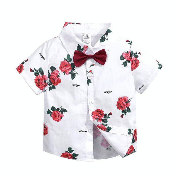 Summer Boys Print Short Sleeve Shirt + Shorts Set, Kid Size:100cm(White)