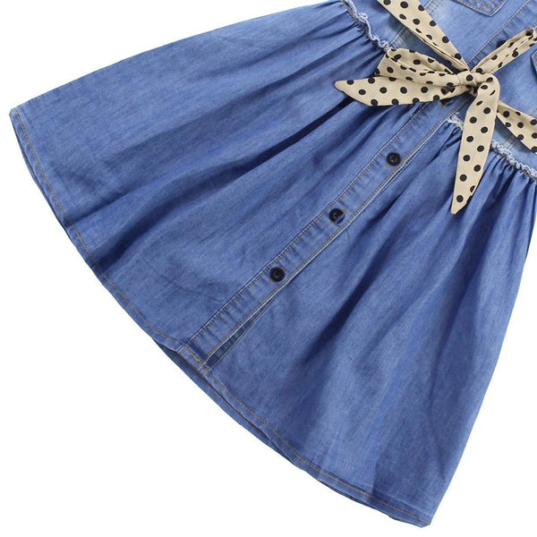 Summer Girl Sleeveless Denim Skirt Dress, Size:120cm(Dark Blue Dot Belt)