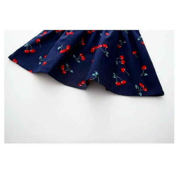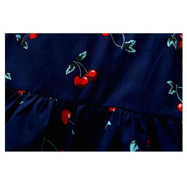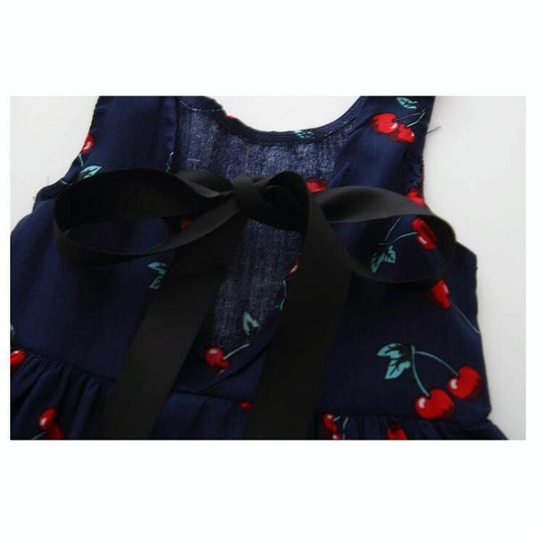 Summer Girls Cherry Pattern Sleeveless Dress, Kid Size:130cm(Navy Blue)