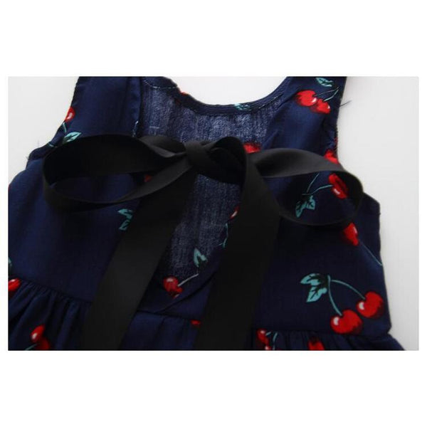 Summer Girls Cherry Pattern Sleeveless Dress, Kid Size:90cm(Navy Blue)
