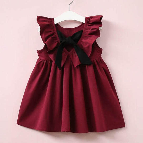 Summer Girls Cotton Sleeveless Backless Bow-knot Pleated Dress, Kid Size:130cm(Wine Red)