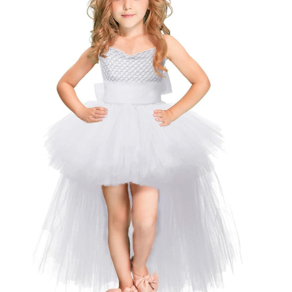 White Girls Lace Sling Dress Mesh Tutu Party Dress, KId Size:7-9 age120-140cm