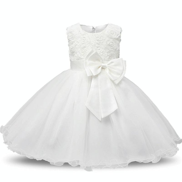 White Girls Sleeveless Rose Flower Pattern Bow-knot Lace Dress Show Dress, Kid Size: 100cm