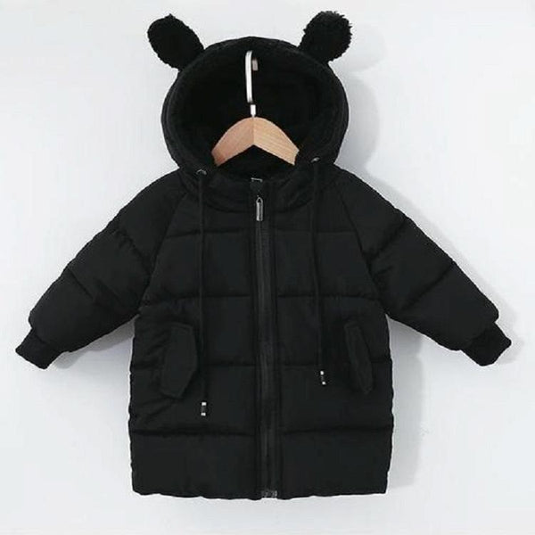 Winter Children Mid-length Thick Warm Down Jacket Cartoon Animal Ear Shape Hooded Cotton Jacket, Height:80cm(Black)