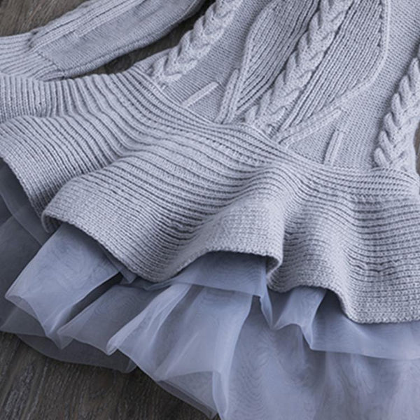 Winter Girls Knit Long Sleeve Sweater Organza Dress Evening Dress, Size:110cm(Khaki)