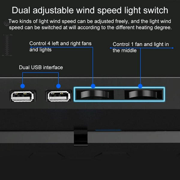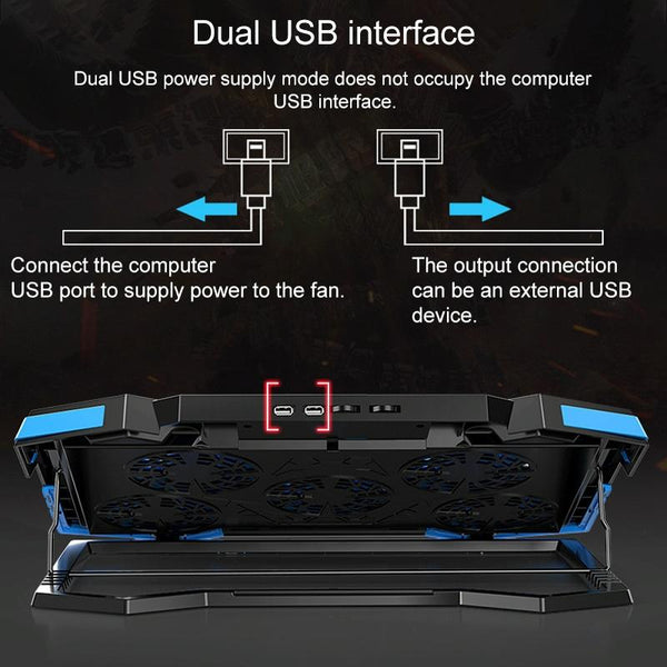 dual USB Ports Five-core Radiator Notebook Computer Holder (Red)