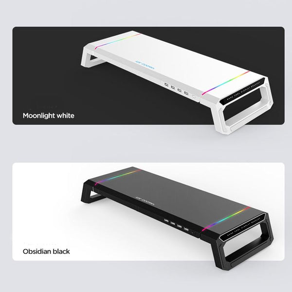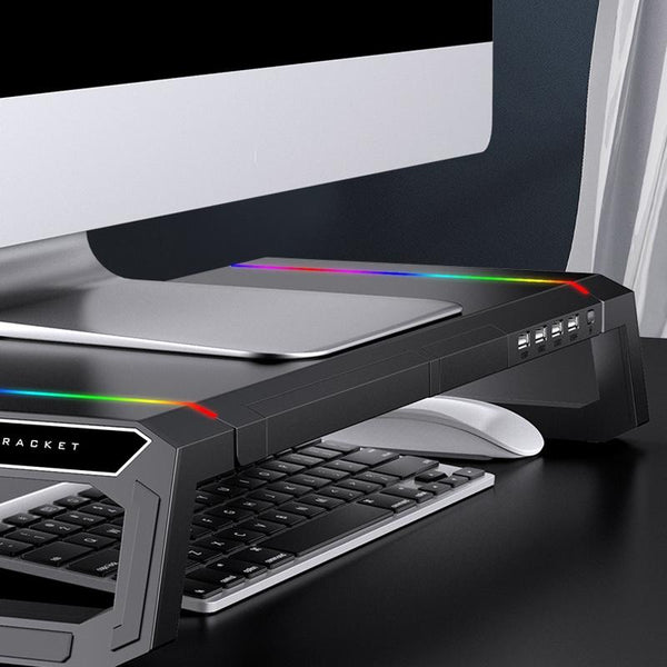 ICE COOREL T1 Monitor Increased Rack Foldable Laptop Stand With RGB Lighting & 4xUSB2.0 Expansion Interface(Obsidian Black)