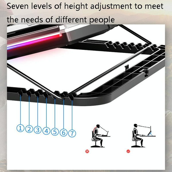NUOXI Q8 Notebook Radiator LCD Screen Button Controllable RBG Luminescence Computer Cooling Base(Black)