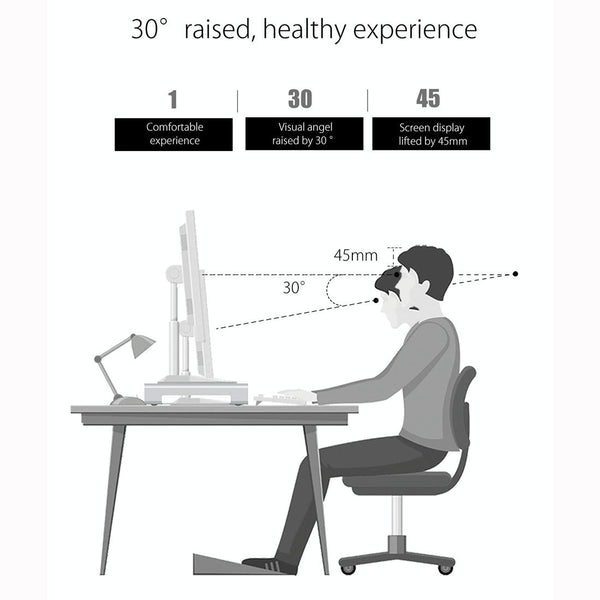 6. Use the bracket to help the display rise 45mm, so that the angle of view is raised by 30 degrees, making it more comfortable to use.