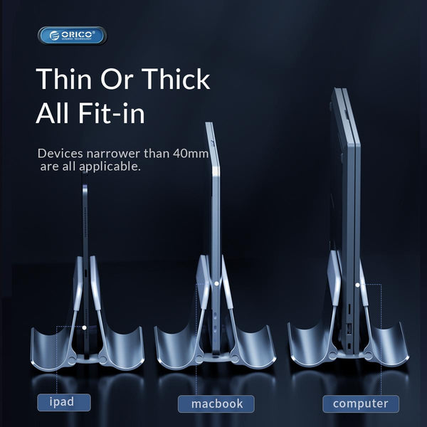 1. Gravity Locking Stand: ORICO vertical laptop stand with gravity locking design can lock your laptop automatically just by placing it on this stand, no adjustment required.
