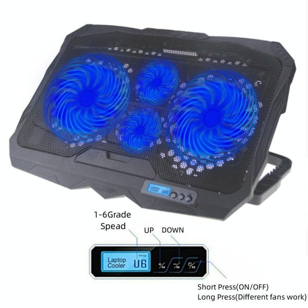 S18 Aluminum Four Fans Gaming Laptop Cooling Pad Foldable Holder with Wind Speed Display(Blue)