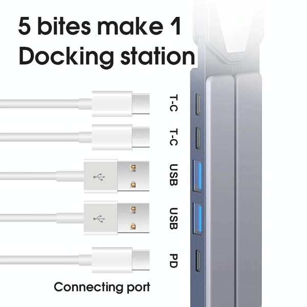 XY-1 5-In-1 Laptop Docking Station Stand Increased Folding Heat Dissipation HUB Bracket(Gray)